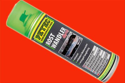 Oberfläche langfristig und ist danach überlackierbar. Für Anwendungen im Bereich Automobil, Bau- und Landmaschinen sowie Industrie und Handwerk. hohe Kriechfähigkeit, sehr gute Haftung, Grundierung&Primer (primern entfällt) Dose vor Gebrauch gut schütteln. Grobe Ablagerungen mit einer Drahtbürste beseitigen und mit PETEC Bremsenreiniger gründlich reinigen und entfetten. Rostwandler-Spray nur auf die korrodierte Stelle sprühen und ca. 7 Minuten einwirken lassen. Achtung keine Grundierung für blanke Metalle! |